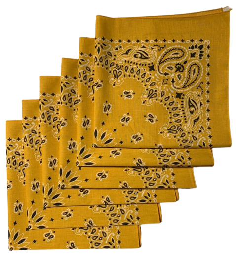 Gold Paisley Bandanas - USA Made (6 Pk) 22" x 22