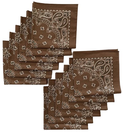 Made in the USA Brown Paisley Bandanas 12 Pk, 22" x 22" Cotton