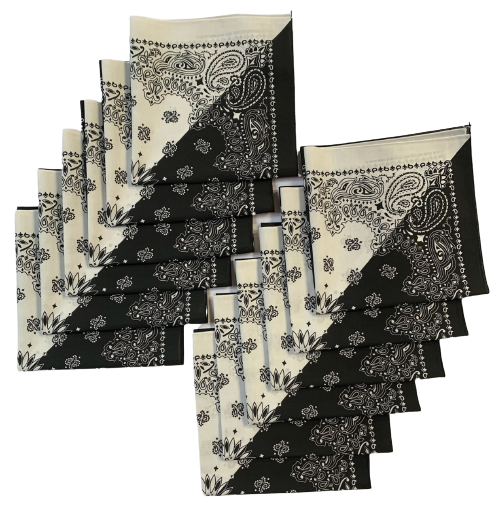Made In USA Black/White Split Paisley Bandanas 12 Pk, 22" x 22"